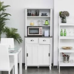 High-Gloss Sideboard Finish Storage Cabinet Home Organisation Aluminium Handles With 2-Drawers White