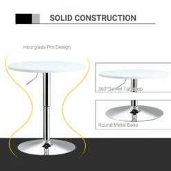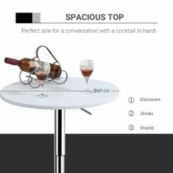 Dine and drink at plenty of different heights – grab this adjustable bar table from . The frame is made from metal so it’s solid and sturdy, crafted with a large round base which keeps it balanced. The polished finish is beautiful and works with the clean white colour of the table top. The top is large and round to offer plenty of holding space. Height is adjustable between 69cm and 93cm, easily adjusts with the handle.