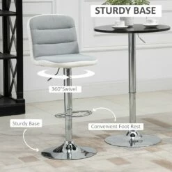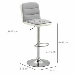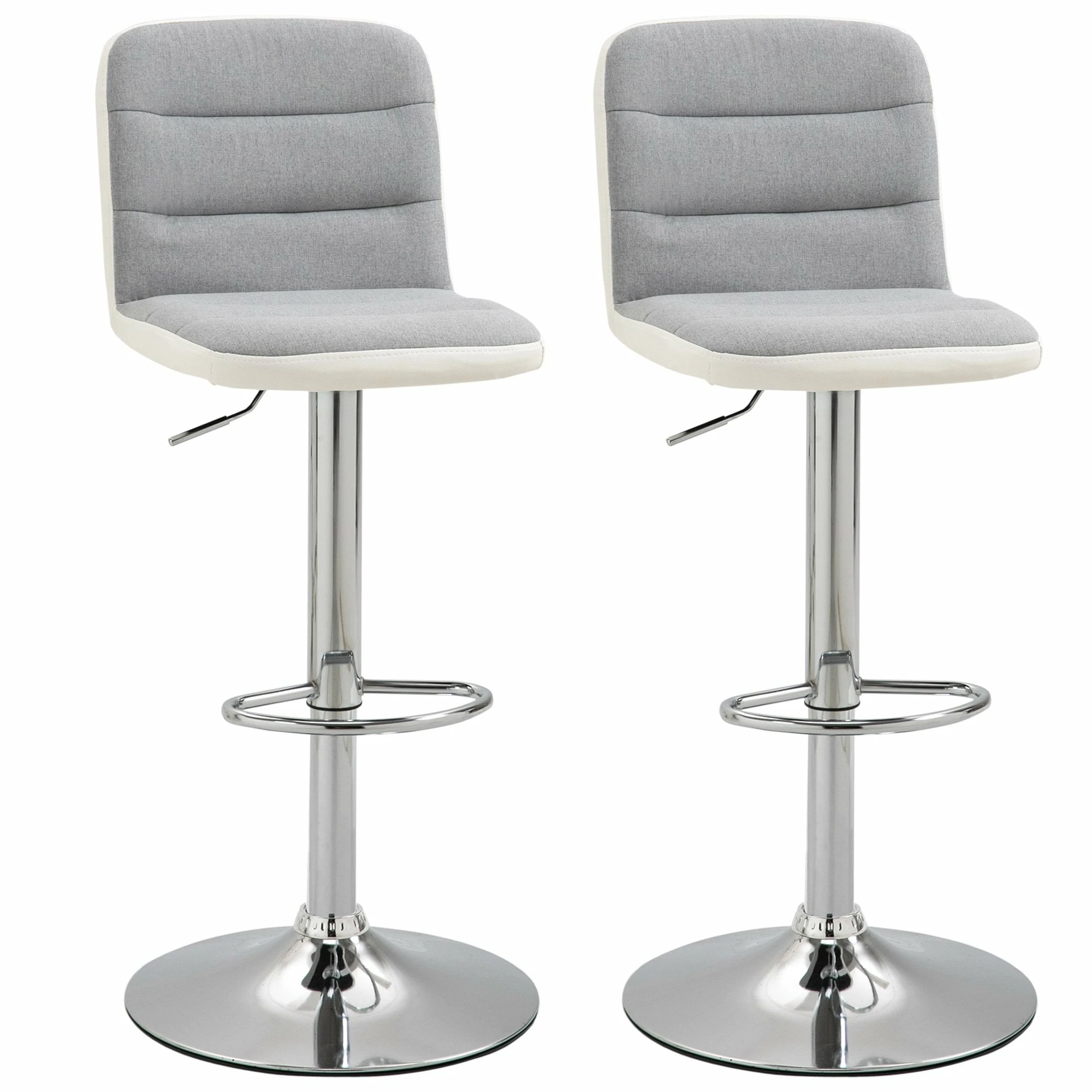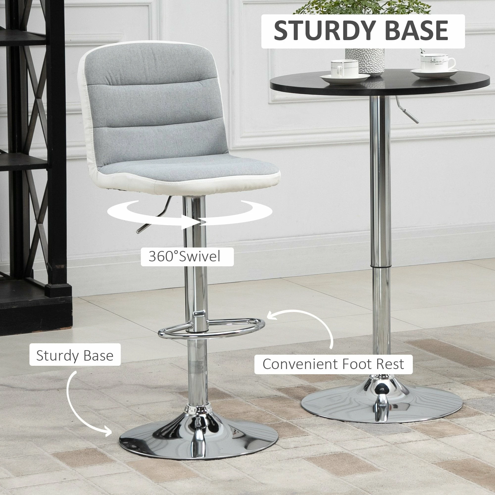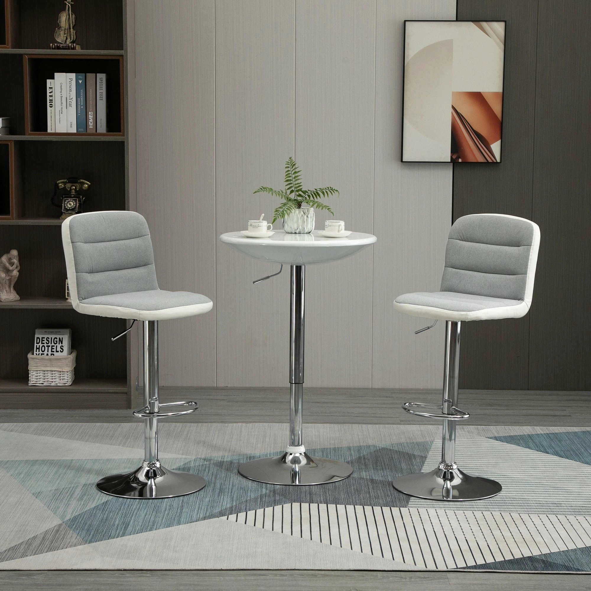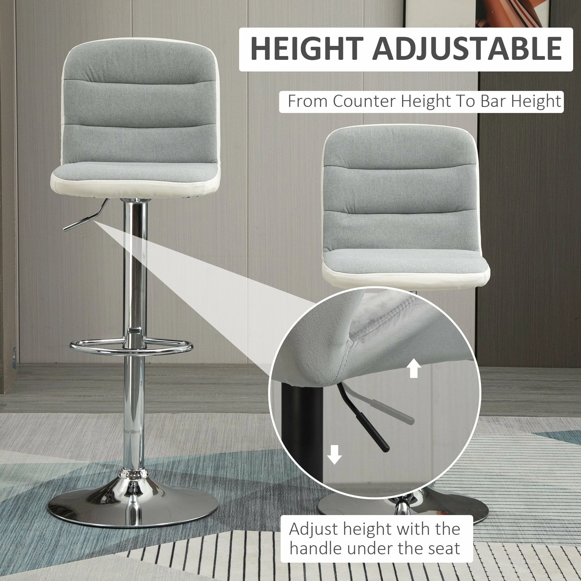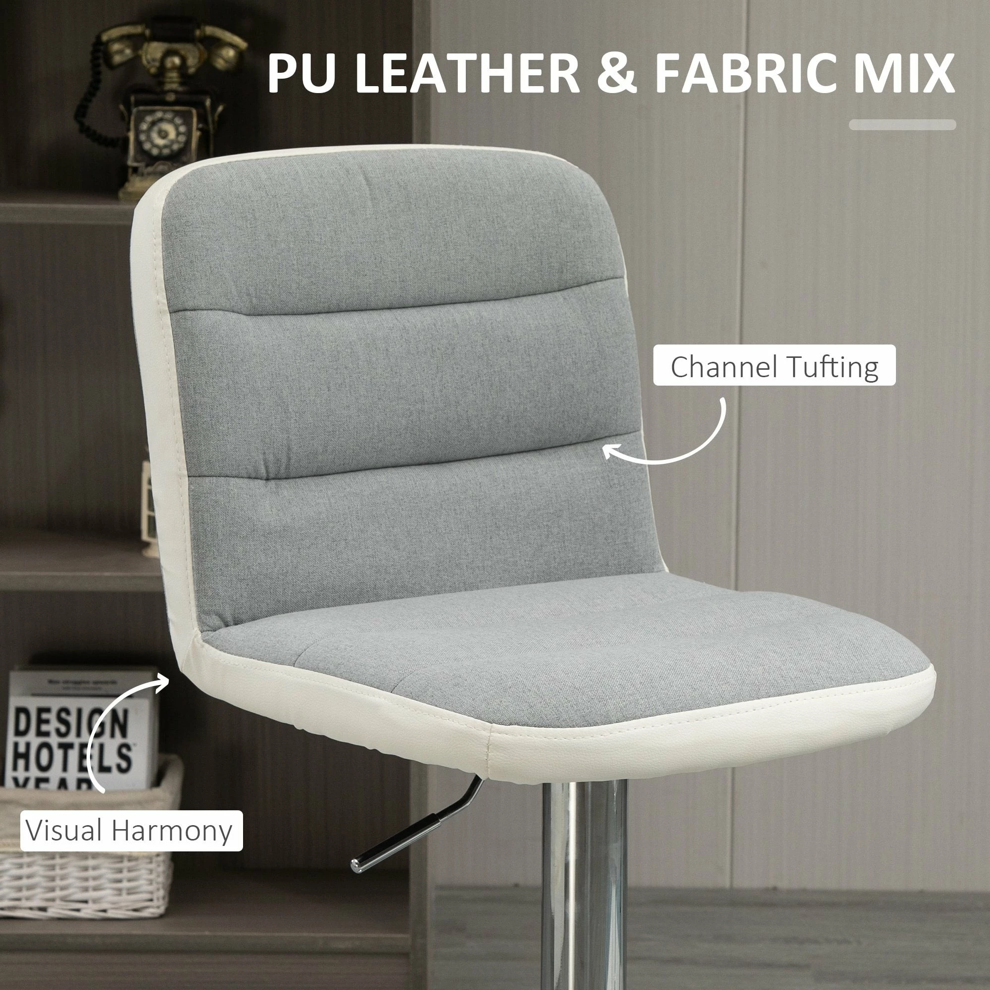 Accent your kitchen counter or seat a guest with this bar stool set. The mid-size back and footrest provides high seating comfort, while the seat height is adjustable to suit different statures. PU leather and linen-touch polyester fabric mix add textual interest.