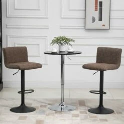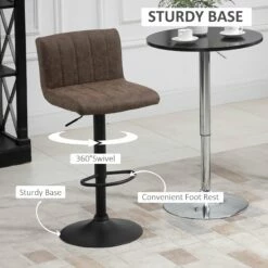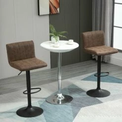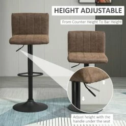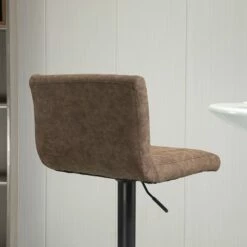 For cool eat-in kitchens and dining rooms, these twobar stools will do the trick. The weathered PU leather upholstery adds instant style, whilst the steel frame ensures full support whilst seated. Seats feature a high back for support, with padding all-over for comfort. Adjustable height to be in level with your worktop/table, each stool comes complete with a large round base for balance.