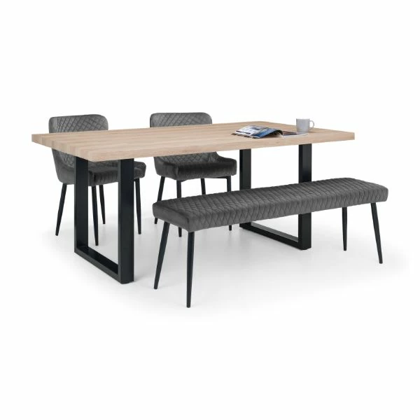 The Berwick dining table has been designed with a rustic oak top with emphasised natural wood grain. The industrial-style, black legs offer a stable structure that contrasts with the oak ÔÇô providing a statement piece for your home. Due to its versatility, the Berwick dining table can be paired with a variety of chairs/benches, such as Julian BowenÔÇÖs Luxe range, or the new Brookyln dining chairs in charcoal grey.