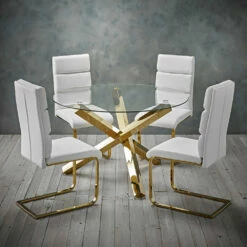 Capri Dining Table Glass Top With Gold Legs 1.2m