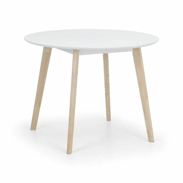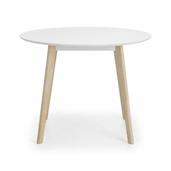 A timeless retro design reflecting the style of the 1950’s. The Casa round dining table has a durable white lacquered top with limed oak effect legs.? Crafted from solid Malaysian hardwood and MDF ensuring long lasting durability.