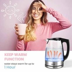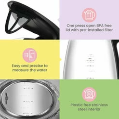 This 1.7 litre, 2200 watt kettle expedites boiling water, enabling quick preparation of tea, coffee and other hot beverages!Â