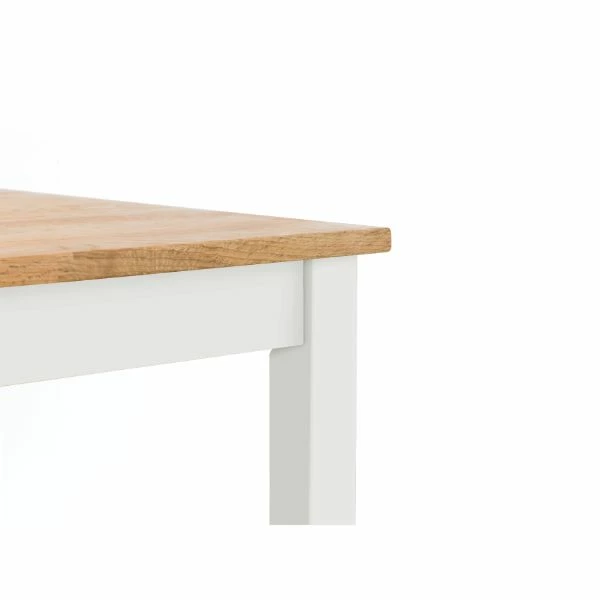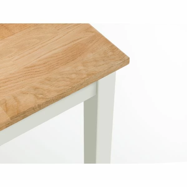 This compact solid oak dining table in a rich oiled oak & ivory finish, is suitable for small kitchen diners. This classic, timeless design adds extra room for you to enjoy your daily meals.