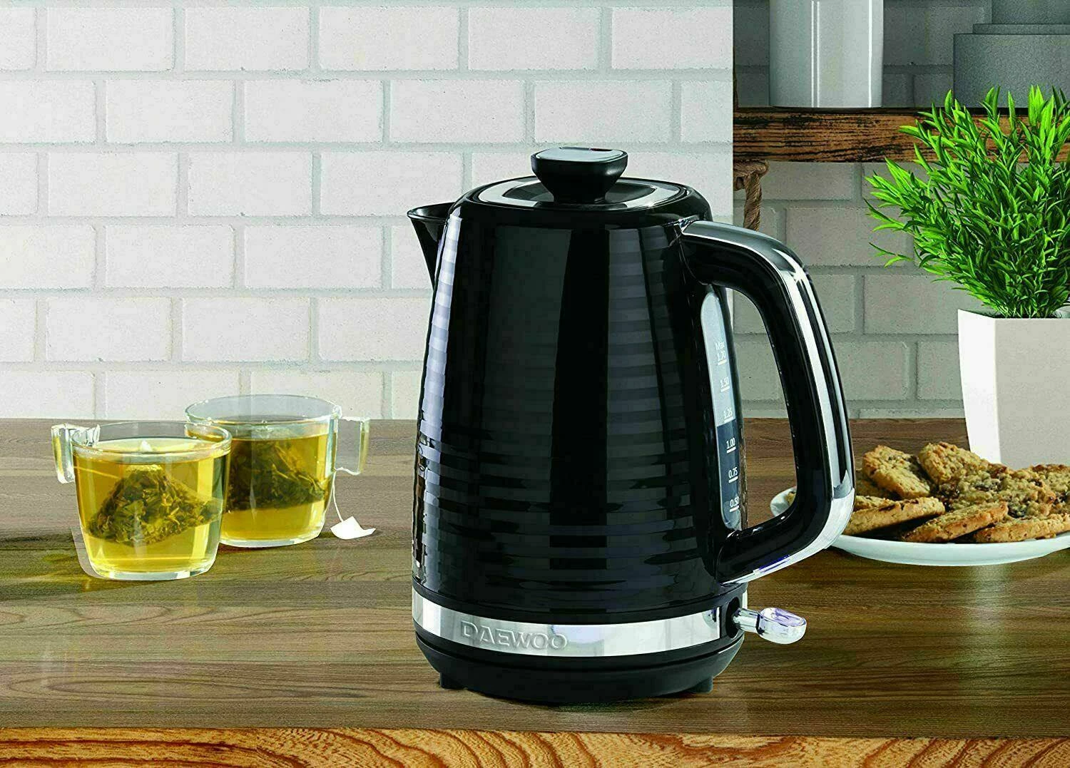 The Daewoo Hive Kettle is stylishly designed with a smooth textured finish plastic body and chrome accented handle and detailing, adding a touch of class to your kitchen. The Hive kettle features a indicator light that lets you know when it is on or off and switches off automatically once the water has reached boiling point. The perfect addition to any contemporary kitchen, pair with the Daewoo Hive toaster to complete the look.