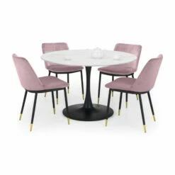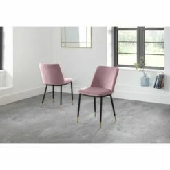 The Delaunay Dining Chair offers a simple, modern design finished in a Pink Velvet with black legs and brushed brass tips for an elegant finish. Perfect for adding a touch of glamour to your living room or kitchen space, this elegant chair will perfectly match a range of dining tables. The Delaunay Chair is available in Grey, Blue or Mustard Velvet.