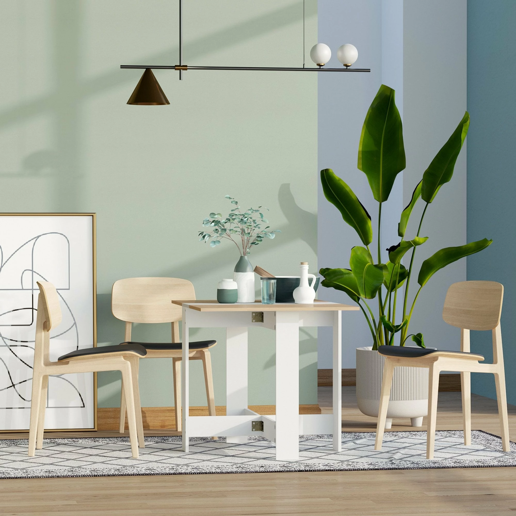 This versatile folding table from HOMCOM is designed to serve 6 people in expending condition and save space in full folded condition. The switch is achieved via the easy-to-operate mechanism on the bottom.It can easily convert by lifing the table top and sliding out the support legs on either site, making it ideal to use as dining table, workstation or a writing desk. Made from prticle board with wide feet for added stability and wood effect sticker for easy maintenance. This two tone design will surely add a touch of elegance to match any decor in your room.