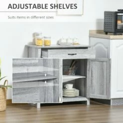 - ADJUSTABLE SHELVING: This buffet cabinet features an interior adjustable shelf. You can easily adjust the height to suit your needs as the shelf can be locked in place at 3 fixed levels.