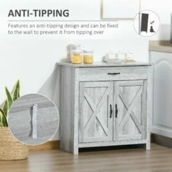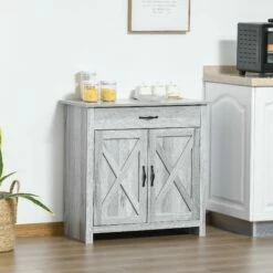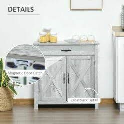 Enjoy relaxing indoor time with this farmhouse styled sideboard from HOMCOM. Sideboard with an enclosed cabinet and a spacious drawer provides additional storage space to store utensils, dry goods, magazines and more. Unique crossbuck is simply striking and sure to elevate your house’s charm.
