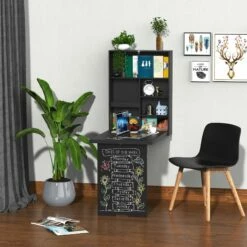 Make the most of your existing space with this HOMCOM stylish and affordable fold-out convertible office desk with storage. It doubles as a working surface and storage area anywhere you need it. Transform an empty spot into your own personal work, study or writing area. This modern home office desk provides everything you need with multiple storage compartments and shelves for customizing the look of your desk and with a blackboard for a quick note. If you’ve been wishing for more room to get things done or just want to clean up some clutter around your home this lightweight, convenient writing desk provides a neat and orderly solution. When space is limited, HOMCOM is big on ideas to maximize your living area, dorm room, or tiny house!