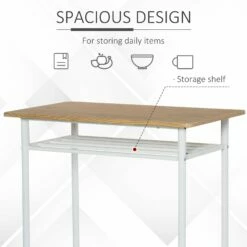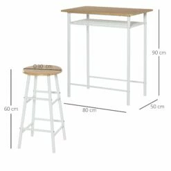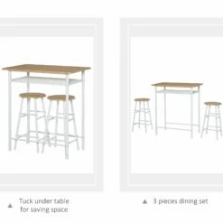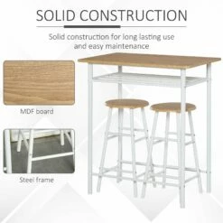HOMCOM 3 Piece Bar Height Dining Furniture Set With 1 Table And 2 Matching Chairs With Metal Frame Footrest And Storage Shelf, For Kitchen, Dining Room, Pub, Cafe