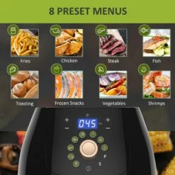 Do you like enjoying delicious crispy fried foods but worried about getting fat? Do you want to make healthy and delicious food for yourself or your family? Choose the air fryer from HOMCOM, a good helper in your kitchen. Thanks to the 8 pre programmed menu options and adjustable temperature and cooking time, your various cooking needed will be satisfied. 5.5 litre large capacity suits for whole family of 4-6 people. Quality material made to provide reliable use for years. Don’t miss it!