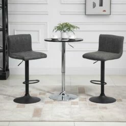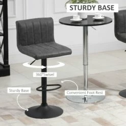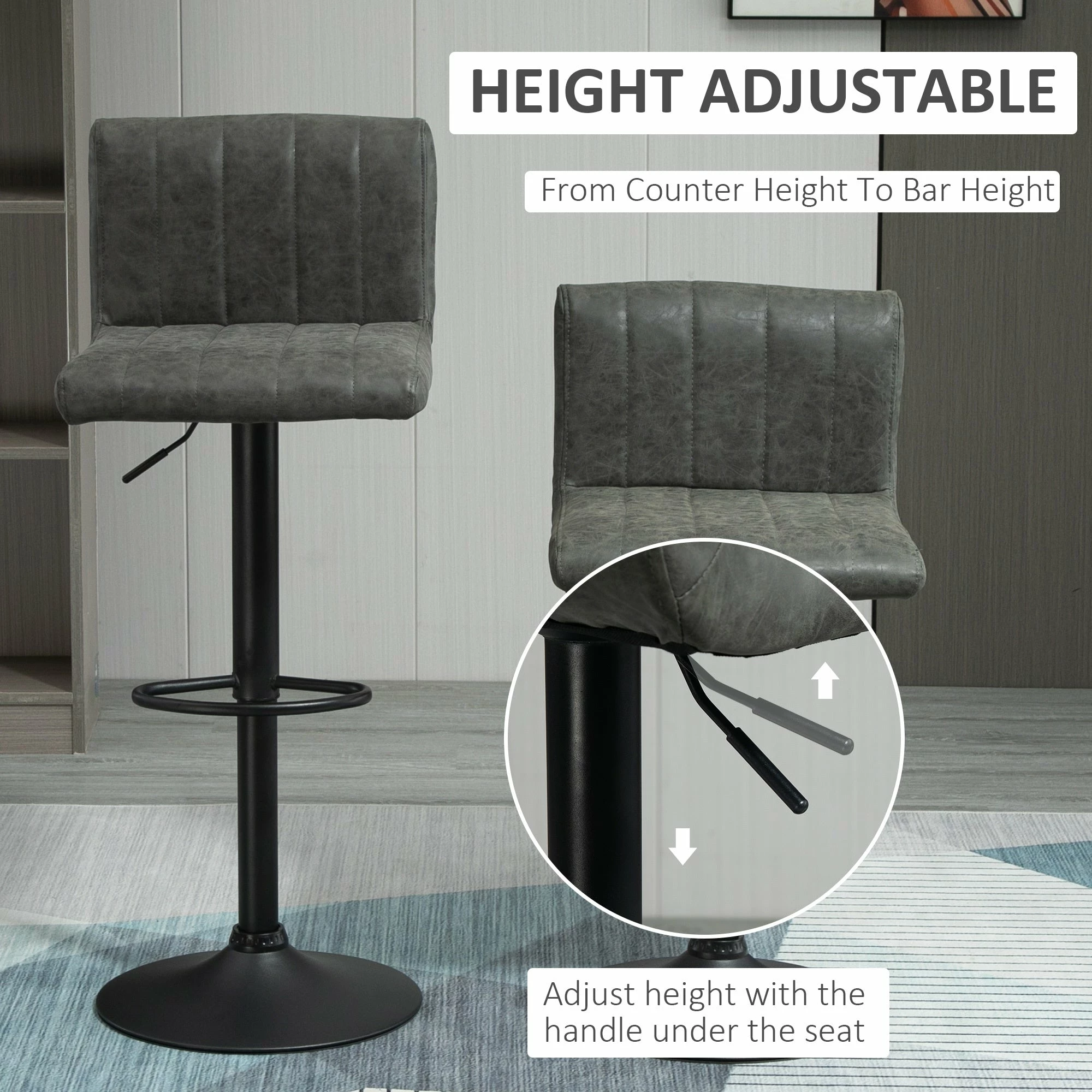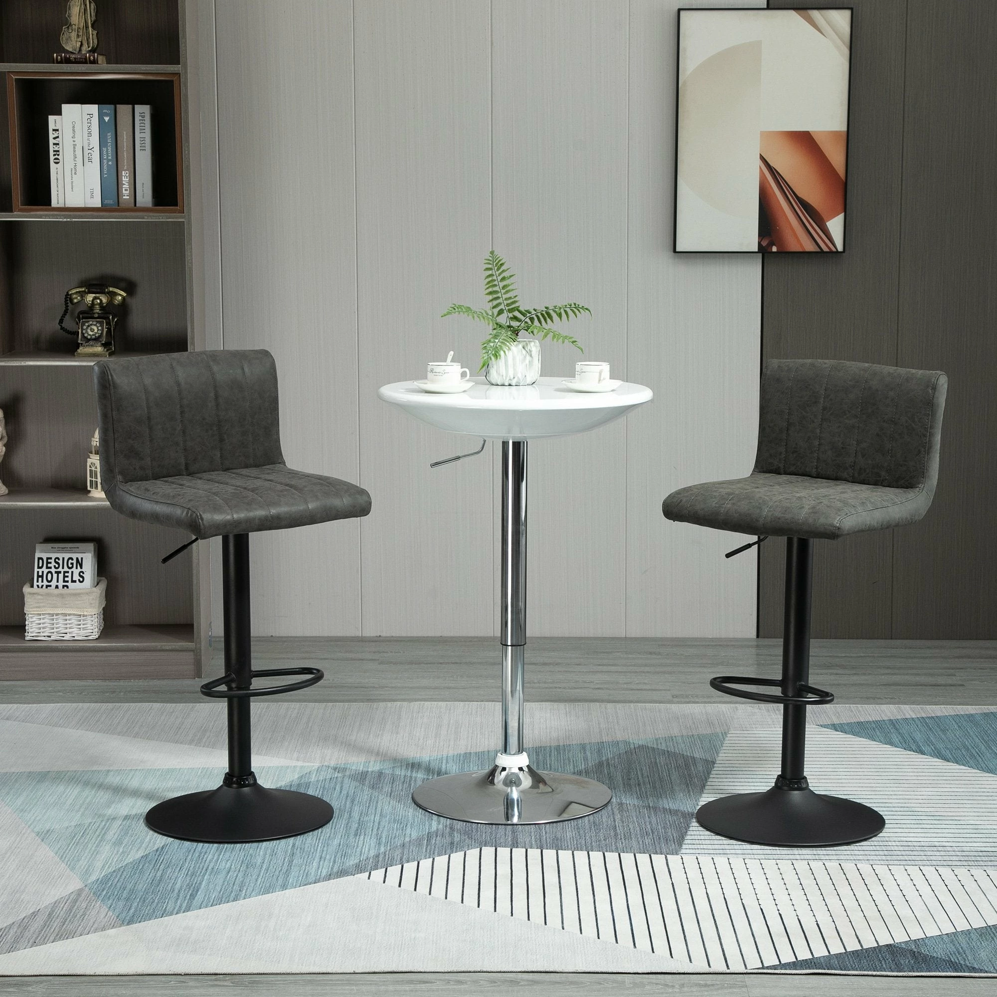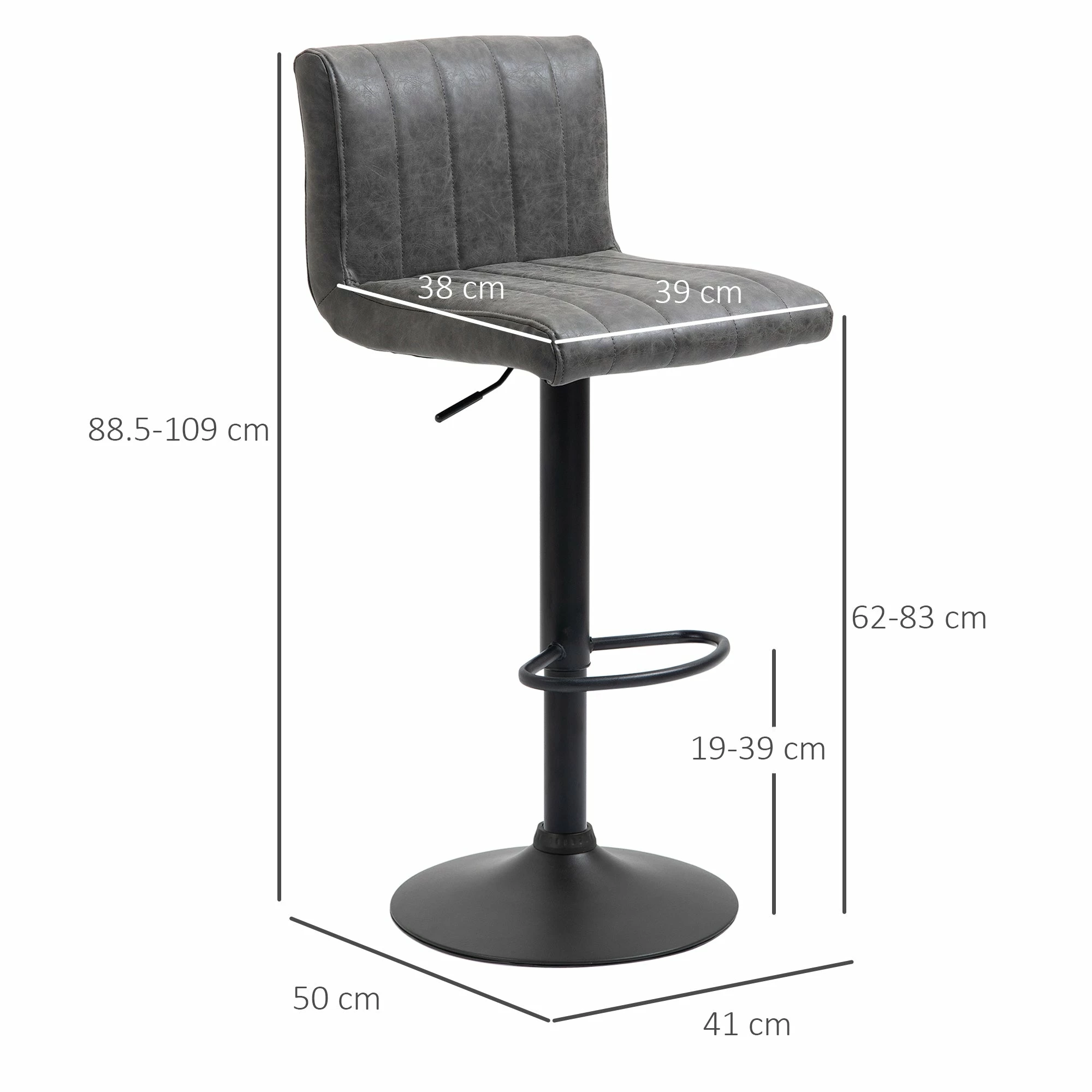 For cool eat-in kitchens and dining rooms, these two HOMCOM bar stools will do the trick. The weathered PU leather upholstery adds instant style, whilst the steel frame ensures full support whilst seated. Seats feature a high back for support, with padding all-over for comfort. Adjustable height to be in level with your worktop/table, each breakfast bar stool comes complete with a large round base for balance.