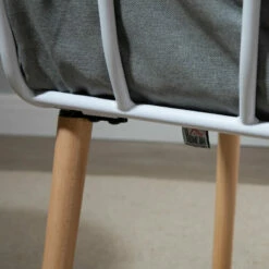 - Four wooden legs for a strong base, angled for balance