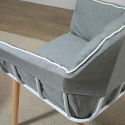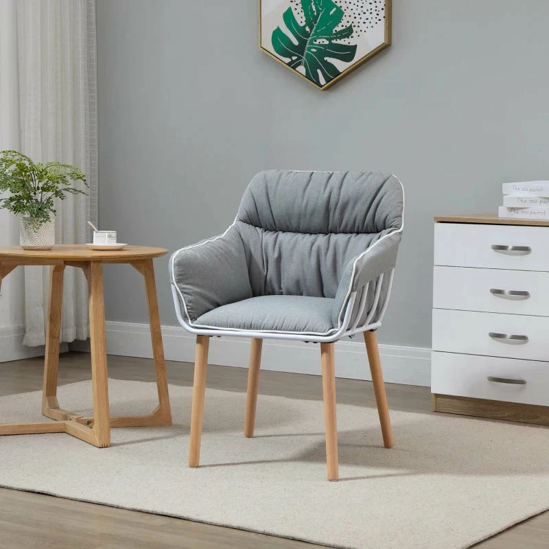 Dare to stand out with this small armchair from HOMCOM. Its different design combines three elements: a top seat, placed on a white cut-out base frame, with four long wooden legs – a contrasting look which can be mixed with other furniture or left by itself. The square-tub seat is large, so there’s plenty of seated room, with padded all over for comfort. The four wooden legs keep the upper half supported. It’s finished with white piping on the top.