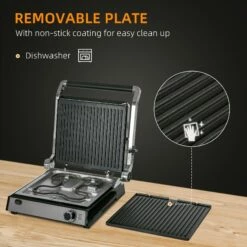 Paninis, steaks, vegetable skewers – what would like to cook today? Well, the choice is yours with this small portable grill from HOMCOM. This closing design is fitted with a self-adjusting top plate, which positions itself in perfect position when the lid is closed – ensuring food is cooked more evenly. The temperature, adjustable between 80βand 230β, allow you to cook food at the best heat – no over/under cooking. When done, you can pop the plates in the dishwasher.