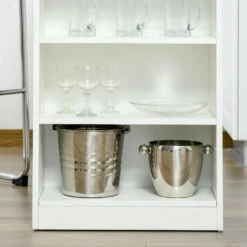 A place to relax or dine, with everything you need near – this duo design table from HOMCOM. Combining a small table with side shelves, you can keep everything you need close to you – crockery, glasses, books – or even use to display your favourite finds; no need to move from your cosy spot once sat down. Made from particle board, the structure is durable – with a wood-effect table top for a stylish look. Finished with protective foot pads on the base.