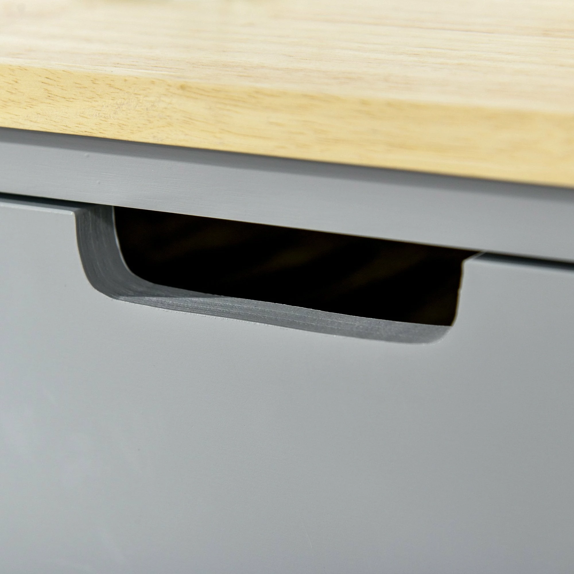 Whether it’s for a helping hand at parties, or extending room in the kitchen every day, look to this island cabinet from HOMCOM. It is fitted with four wheels to move easily. Features a drawer and two open shelves for plenty of storage and holding room of food, crockery and bottles. The towel rack on the side means you can hang a dishcloth in a memorable spot. Finished with a solid rubber wood top for easy and solid preparation space.