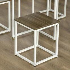 Compact for even the smallest of spots – stylish for revving up your home in an instant: bring this five-piece set into your home this season. Comes with a square table and four stools, where each stool tucks under the table for compact storage when not in use. Table top and seats are made from MDF, they’re durable in a polished wood-effect finish. Frame of each piece is made from steel for a strong structure, supporting each person properly when is use. All pieces finished with adjustable feet.