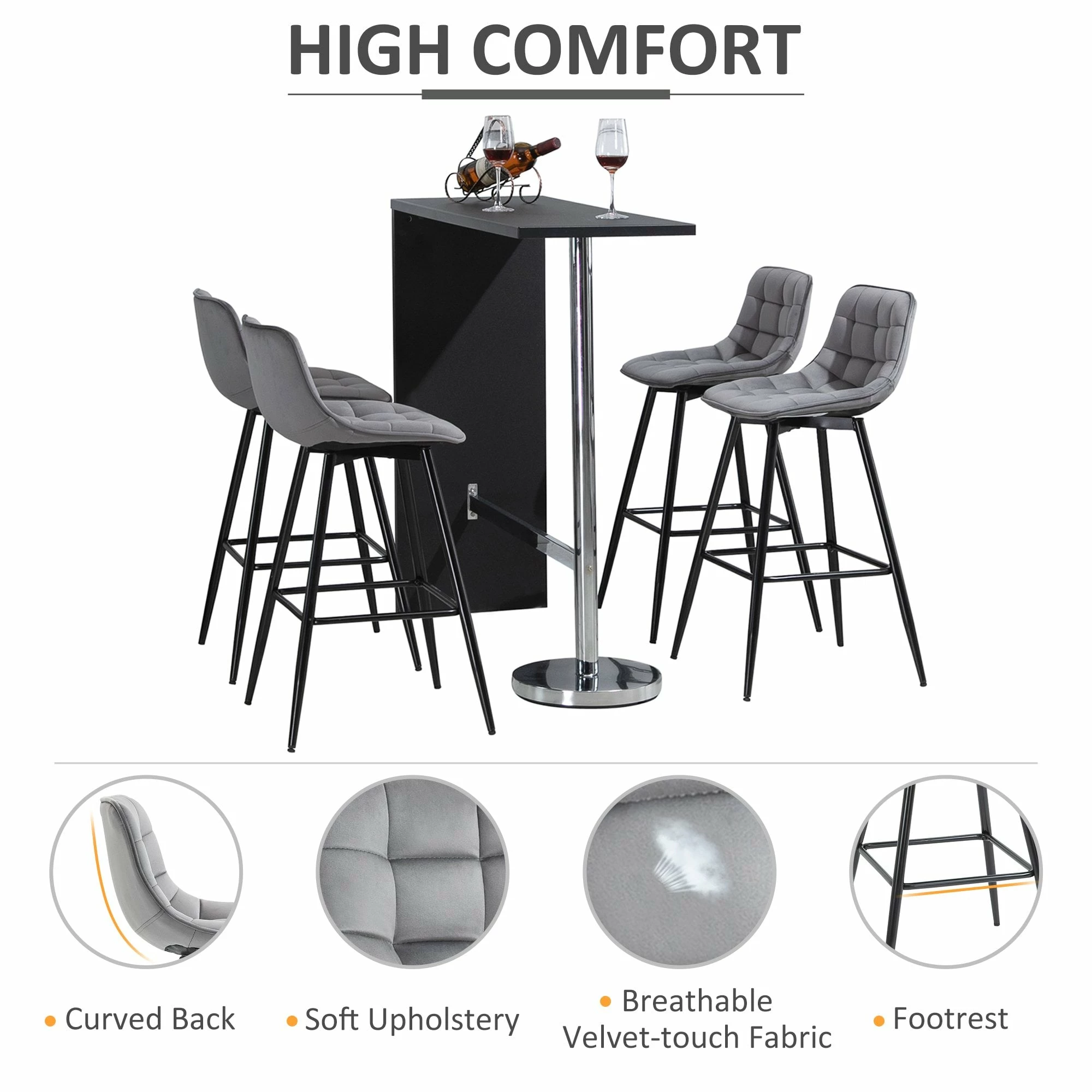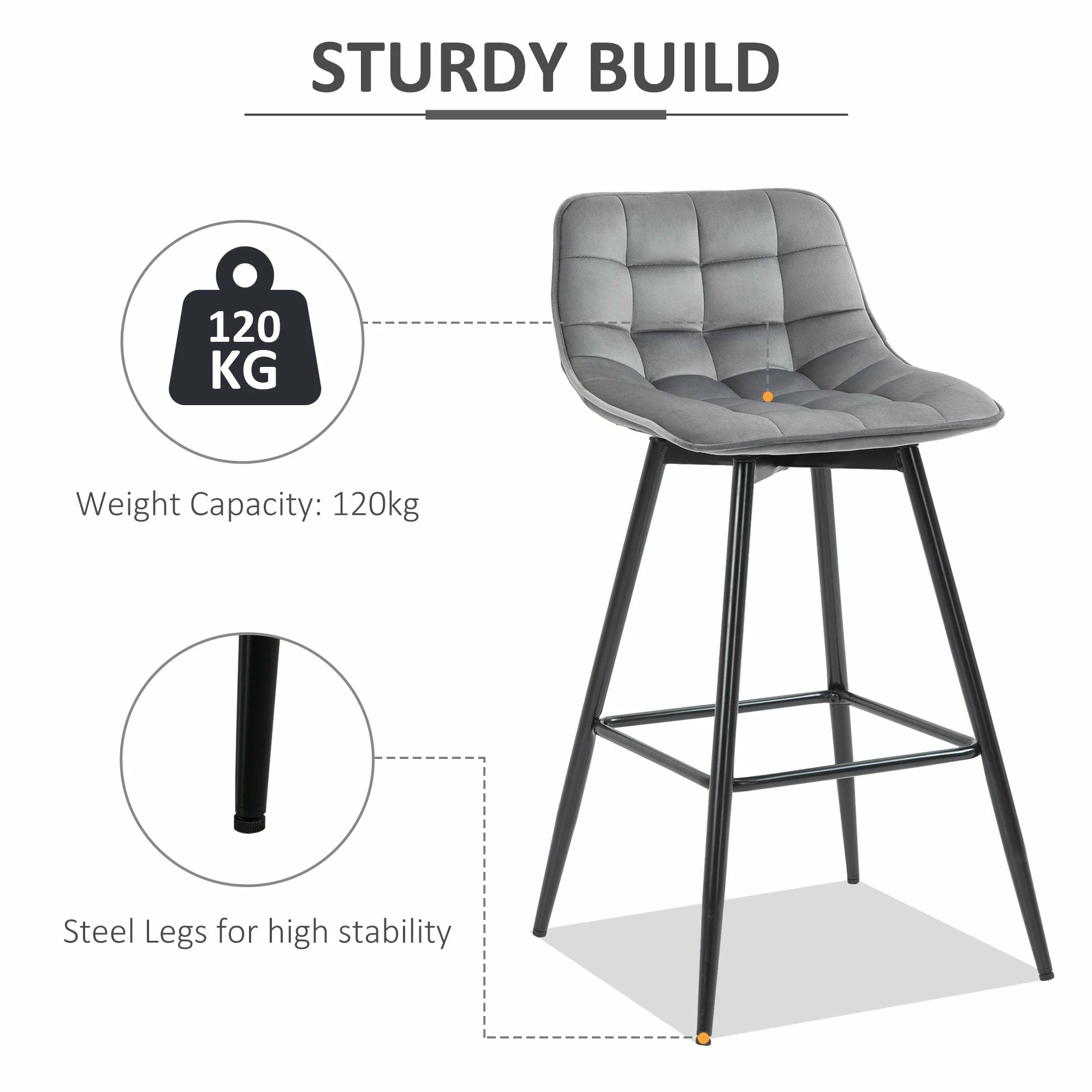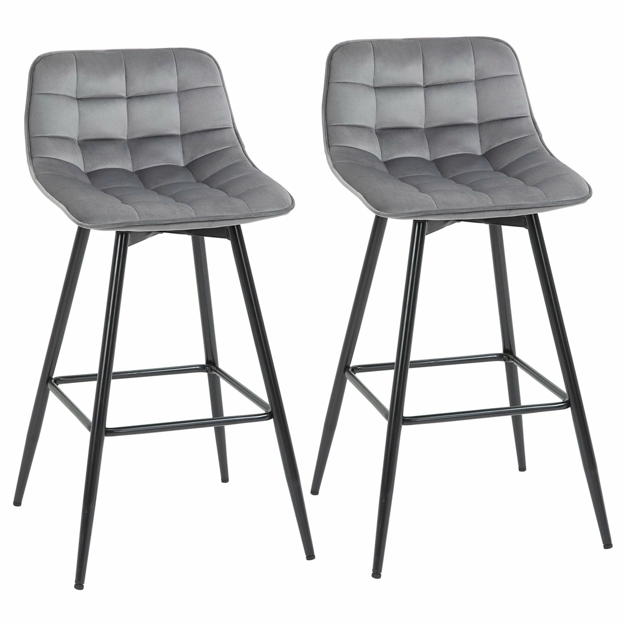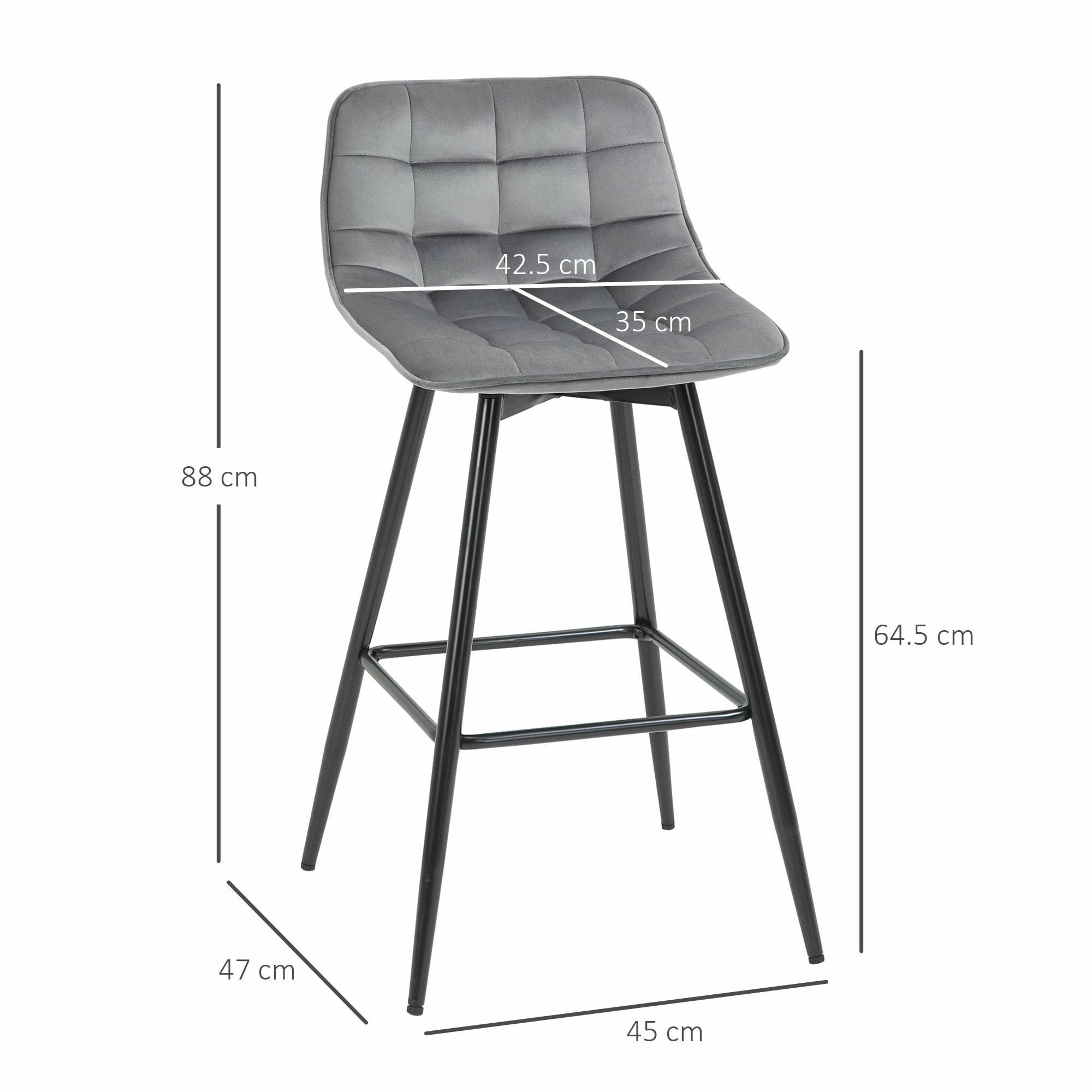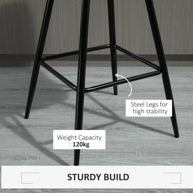 Let these two stools from HOMCOM do all the stylish talking for your home and beyond. Each seat is formed into an open design, where it curves gently and softly for you to sit with ease. Padded with sponge for comfort, the seats are wrapped in velvet-feel upholstery which is soft on the skin. Made from steel and formed into an ‘A’ shape, the base of each bar stool is sturdy and will ensure you are seated with complete balance. They are finished with foot bars so your legs aren’t left dangling.