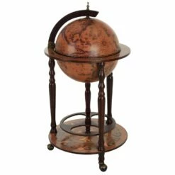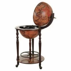 A 16th Century replica of the Italian design made to impress your guests. The elegant globe bar is covered in an exquisite old world-map that will enhance the surroundings of your room. Let the human migrate on the outside show the history while doves on the inside gives a peaceful message. It has great space for your treasured bottles and glassed with a lower shelf allowing additional storage. Freedom of movement made easy by the quality wheels. Treasure this piece of art today.