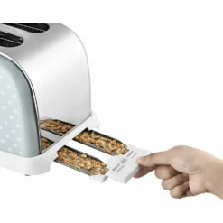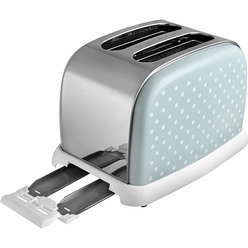 Timeless design: this toaster combines a classic hand-printed Shutter Green polka dot finish with high-grade stainless steel housing to make for a clean and elegant addition to any kitchen.