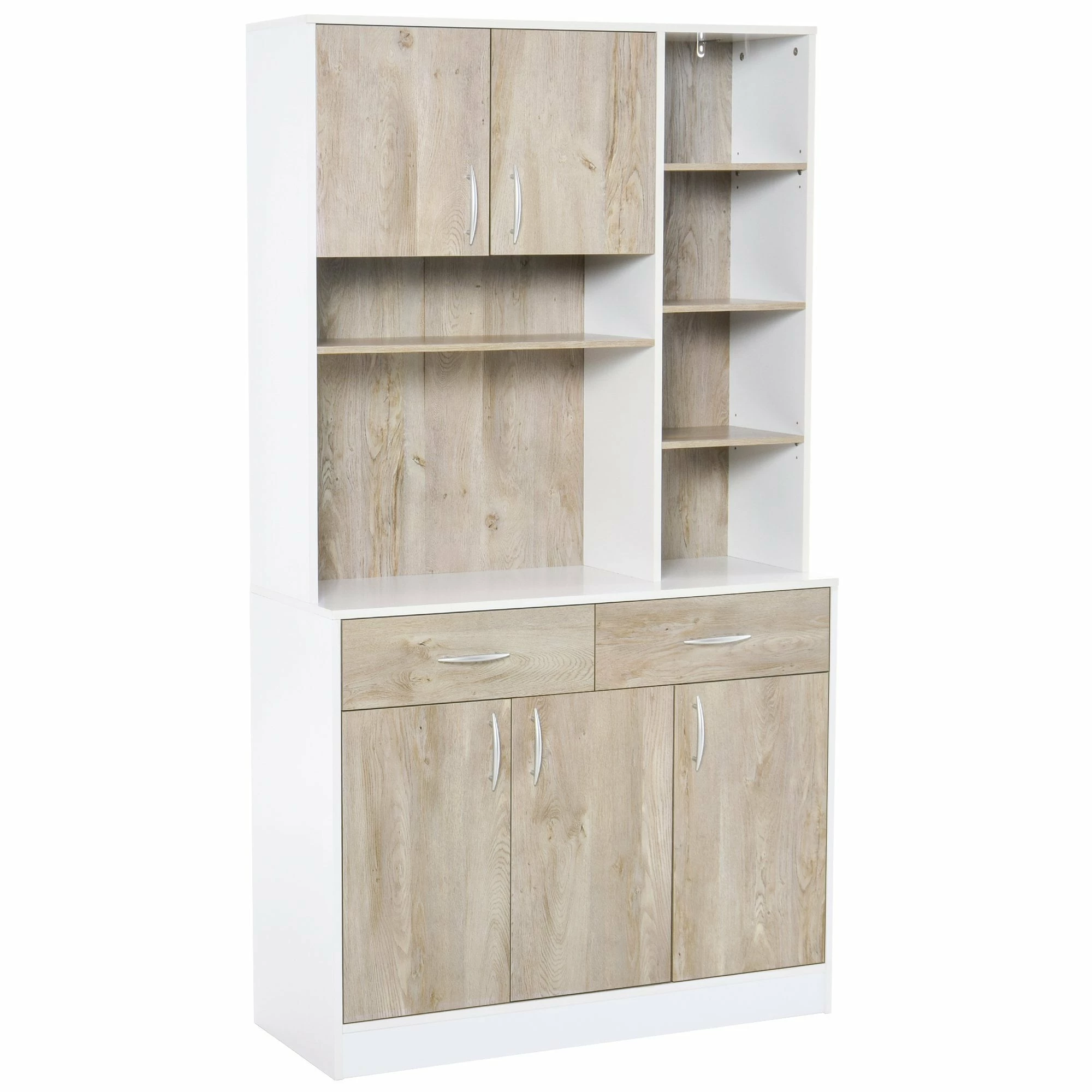 This kitchen buffet with hutch features a simple modern design and can be fit into various styles of decorations. It features 6 open compartments for utensils and plates, 2 easy-glide drawers for accessories and 3 enclosed cabinets for kitchen supplies. With its compact design and great storage capabilities, it will give you perfect usage experience.