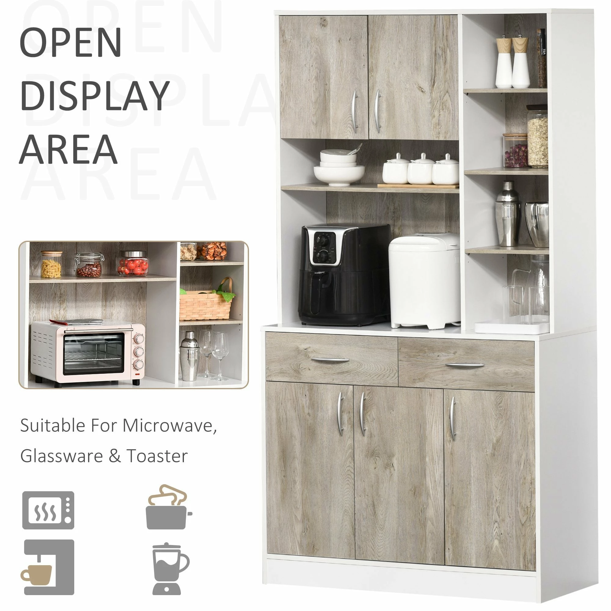 - SUFFICIENT SPACE FOR STORAGE AND DISPLAY: It features 6 open compartments for utensils and plates, 2 easy-glide drawers for accessories and 3 enclosed cabinets for kitchen supplies. It is equipped with 4 adjustable shelves to accommodate items of various heights.