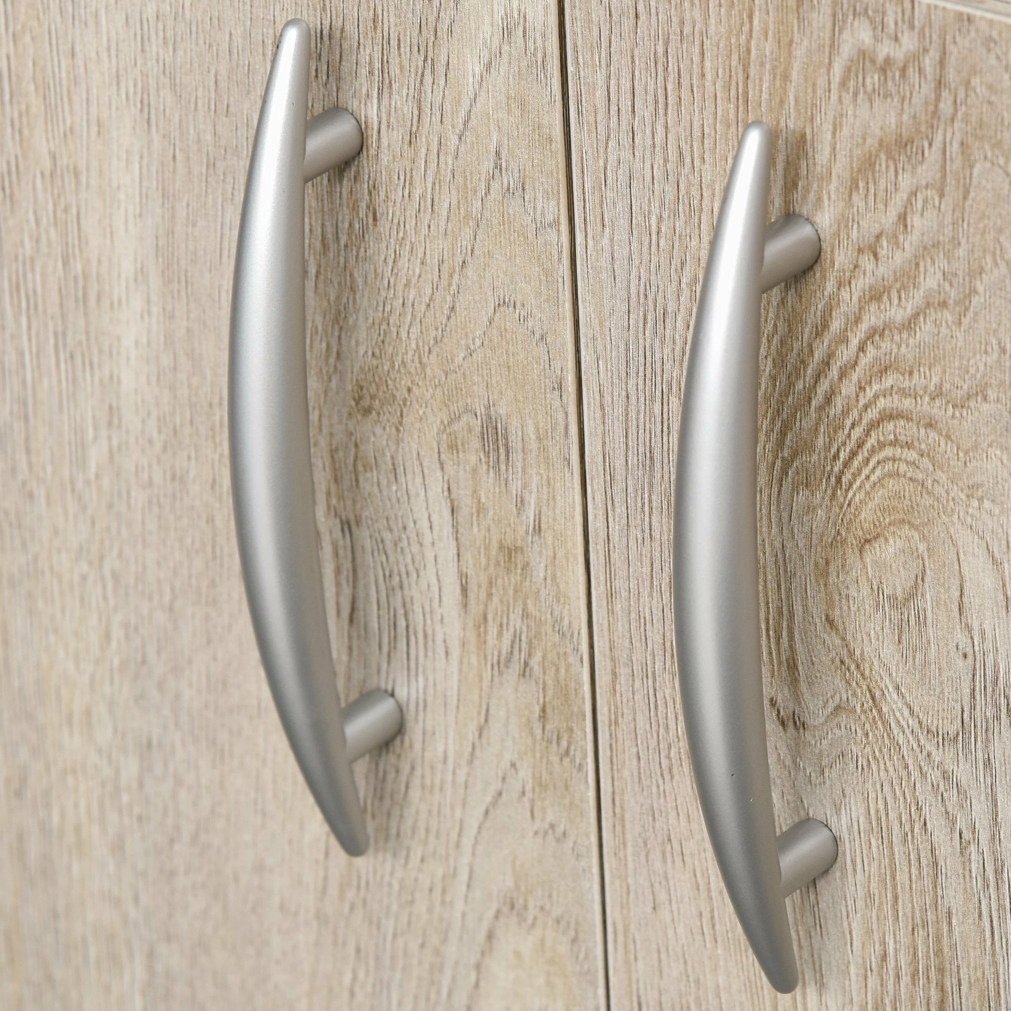 - Made of particle board and solid metal hardware for durability and easy cleaning