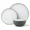 The material used for manufacturing this likeable 12-piece set is high grade fine porcelain, the material is lightweight, durable, has an elegant design and is well finished. The style of these fine porcelain dinnerware pieces complement a contemporary kitchen décor.