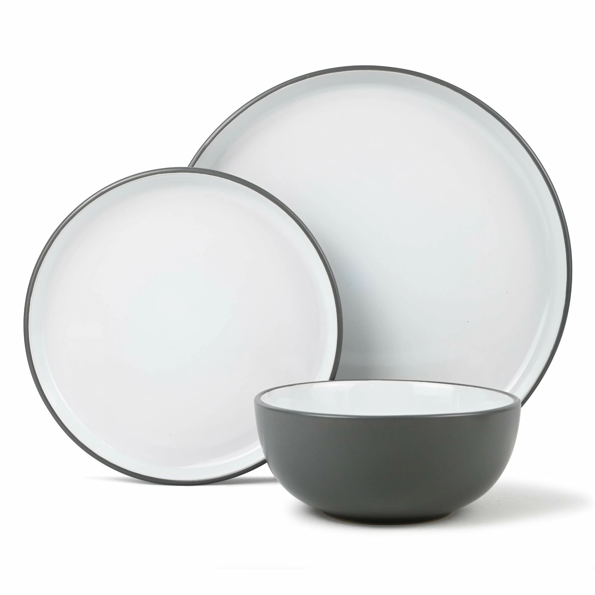 This two tone 12 piece stoneware dinner set will allow you to be the perfect host, it is perfect for casual dining or formal entertaining. In a stylish white glossy finish, and outside matte grey, this looks great and will add a touch of luxury to your kitchen or dining table.Â