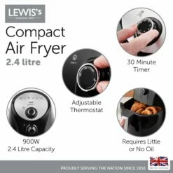 - 2.4 LITRE COOKING BASKET The air fryer has a sizable capacity of 2.4 litres. This providing the healthy cooking alternative with enough space to prepare an individual accompaniment for the 2-3 diners all in one session. The overall frying unit is compact enough to be placed on kitchen worktops and still leave sufficient space for food preparation.