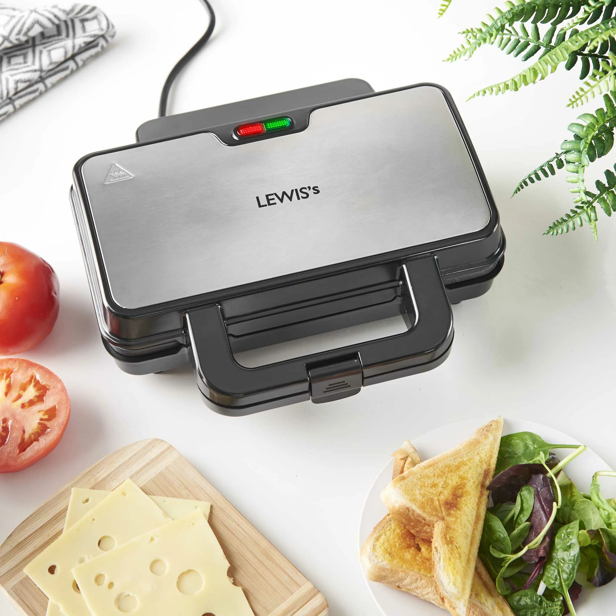 Lewis’s Sandwich Maker is great for creating four perfectly cooked crisp triangles in minutes. It comes with deep fill non-stick plates for easy cleaning.