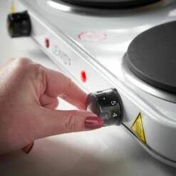 This easily transported twin portable stove electric is made from stainless steel that is durable, resistant to corrosion and easy to clean. The sturdy appliance is cleaned effortlessly during and after use as spills and stains can be simply washed away with a wet wipe, cloth or piece of kitchen roll.