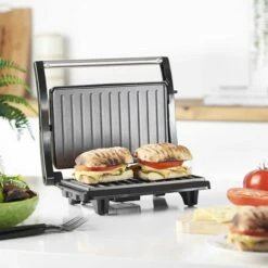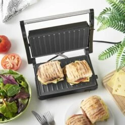 The Lewis’s Panini Grill has non-stick cooking plates which means that there is no need to use oil which is much healthier for you. It also means that cleaning the grill is easier as a quick wipe is all you need