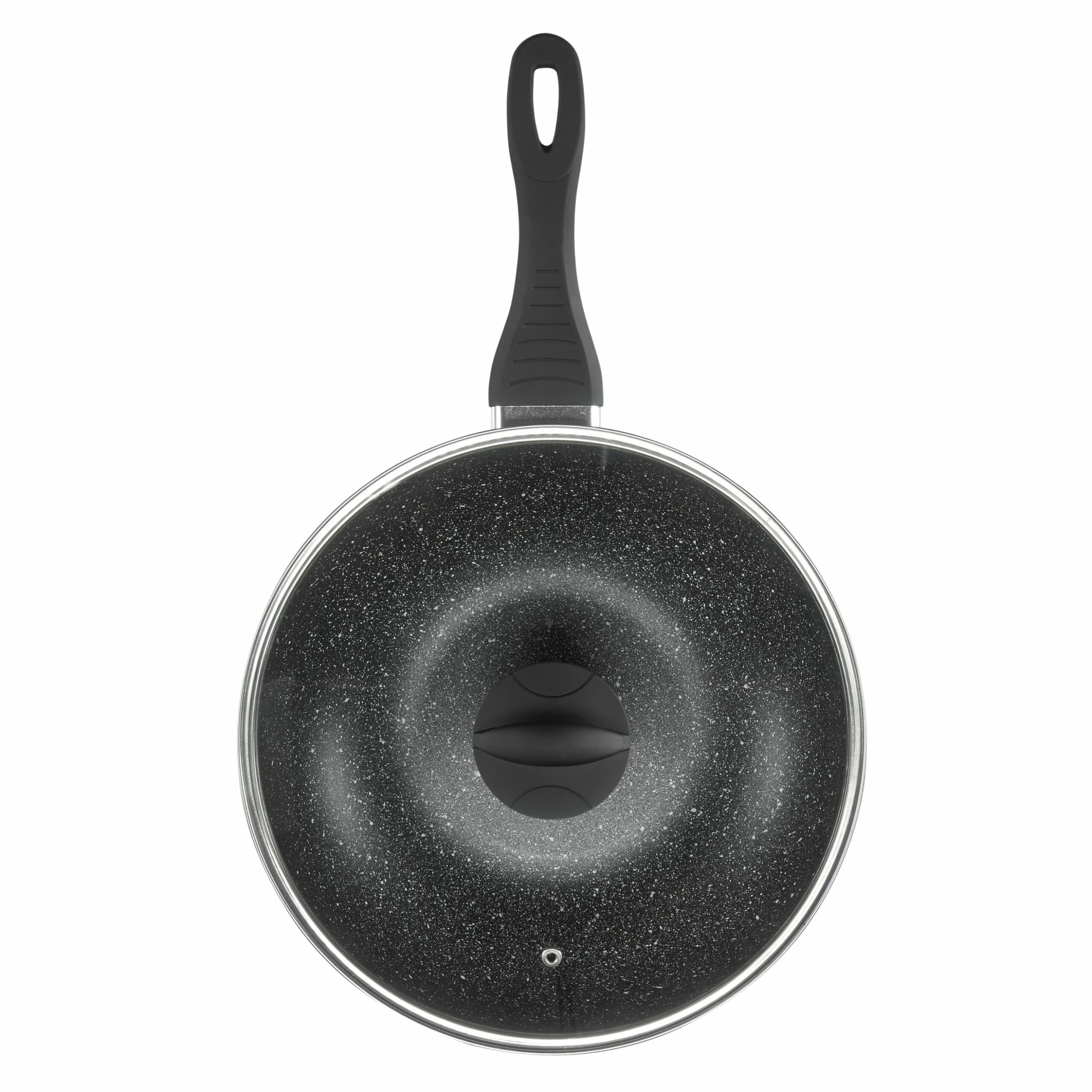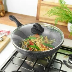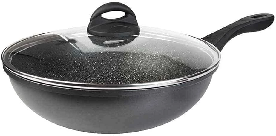 The top-quality woks with lids has a scratch resistant surface designed to offer longevity of quality and display. This allows the wok’ to withstand bangs, overheating and multiple washes. This induction wok is dishwasher safe. However, some detergents may contain corrosives which can harm the pan. If placed in the dishwasher, the pan’s marble effect coating may become dulled or discoloured due to detergents.