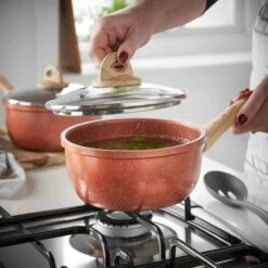 This feature gives you optimal control and feels incredibly smooth and comfortable to the touch when using the copper saucepans, allowing you to move the induction hob pan set without fear of coming into contact with heat. The comfortable to grip and heat resistant handle that provide an extra level of quality and safety reassurance in line with the best quality stainless steel sets on the market.