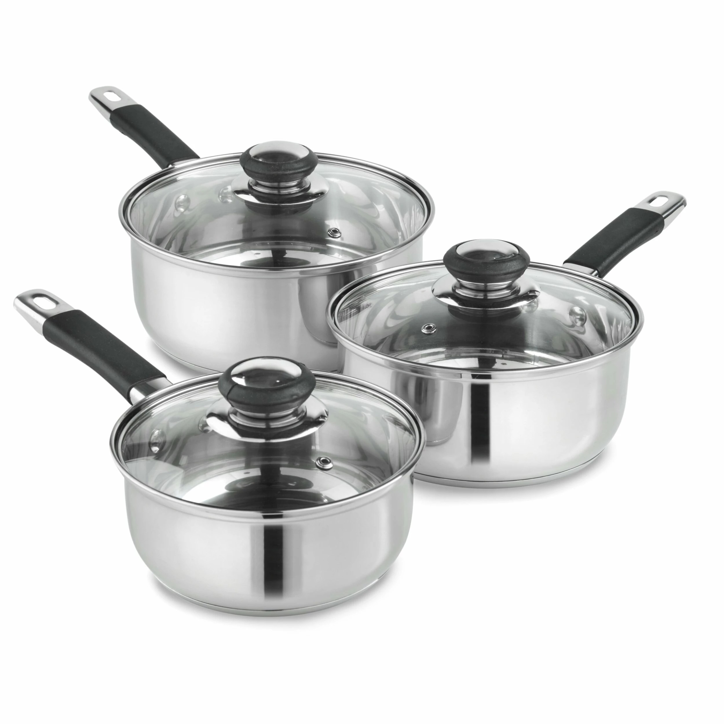 The efficient and well-designed set is perfectly suited for those who love to cook from home, the practical pans have a comfortable to grip and heat resistant handle that provides an extra level of quality and safety reassurance in line with the best quality stainless steel sets on the market.
