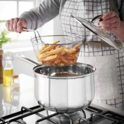 This Lewis’s Stainless Steel Chip Pan is designed for long-term, continuous use in the kitchen. With a 20cm basket and lid, it is a great choice for a variety of cooking needs. Crafted with durable, stainless steel construction, this chip pan ensures reliable performance for years to come.