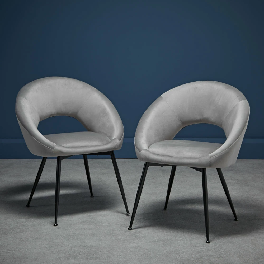 The Lulu velvet dining chair brings together comfort, style and softness with its on trend cut out back. Upholstered in plush velvet available in a choice of soft pink, pale grey or classic black. Sold in packs of 2.