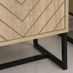 MDF 2-Tier Storage Cabinet Adjustable Shelf Metal Frame Handles Tabletop Unique Home Style Organiser, 80H X 80L X 29.5Wcm-Oak