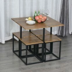 - COMPACT: Each stool can be tucked under the table, helping to save space. DIMENSIONS: Table: 75.5H x 80L x 80Wcm. Stool: 45.5H x 36L x 36Wcm.