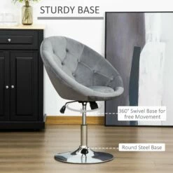 Inject beautiful style into your kitchen counter or bar dining area with this stool from . Enveloping tub seat delivers exceptional comfort. Velvet-touch polyester fabric and button tufting creates an instant focal point. Adjustable seat height and swivel seat provides free seating experience. Round, large and heavy to keep the stool balanced when in use.