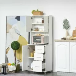- MORDEN STYLE: This kitchen cupboard stands out for clean line and classic white and grey appearance, it can also be used as a storage sideboard or bookcase in dining room, living room or study.
