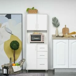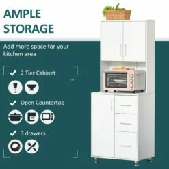 - Special structure is suitable for most rooms like kitchen,dining room or study. A 2-door storage cabinet with shelf, a microwave rack with cable management, a bottom storage cabinet and 3 drawers meet your needs