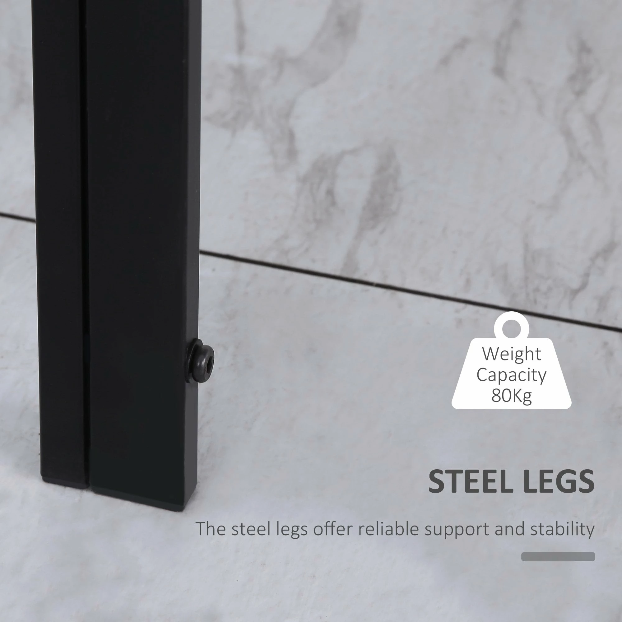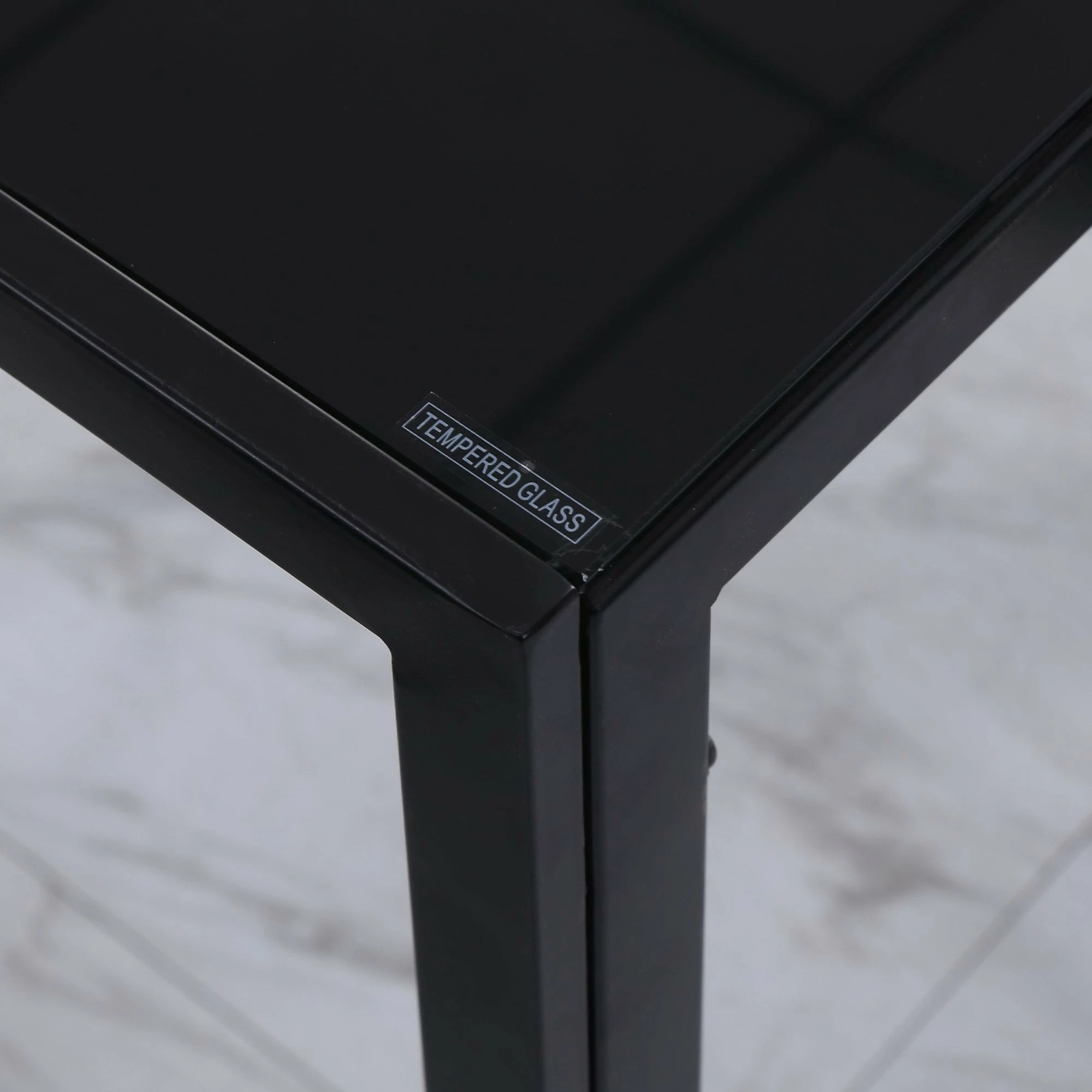 A touch of contemporary for dinner parties, gatherings and everyday meal times, thanks to this two-seater table from . It’s fitted with a 6mm tempered glass top for a sleek look, whist ensuring you’ve got a solid spot to dine and drink from. Four-seater size great for sharing with the household or friends. Made from steel, the frame is tough and sturdy, with the square-shaped legs helping to keep it stable. Finished with plastic pads to protect floor.
