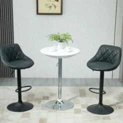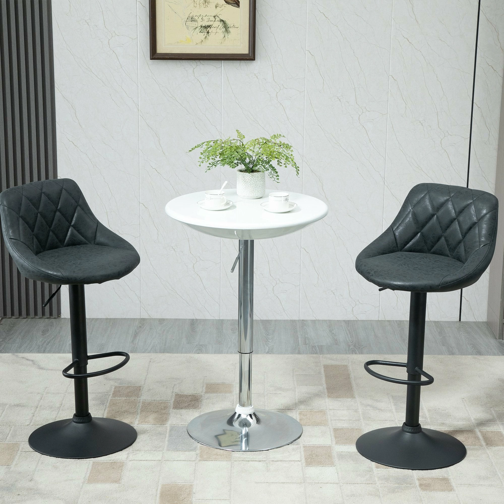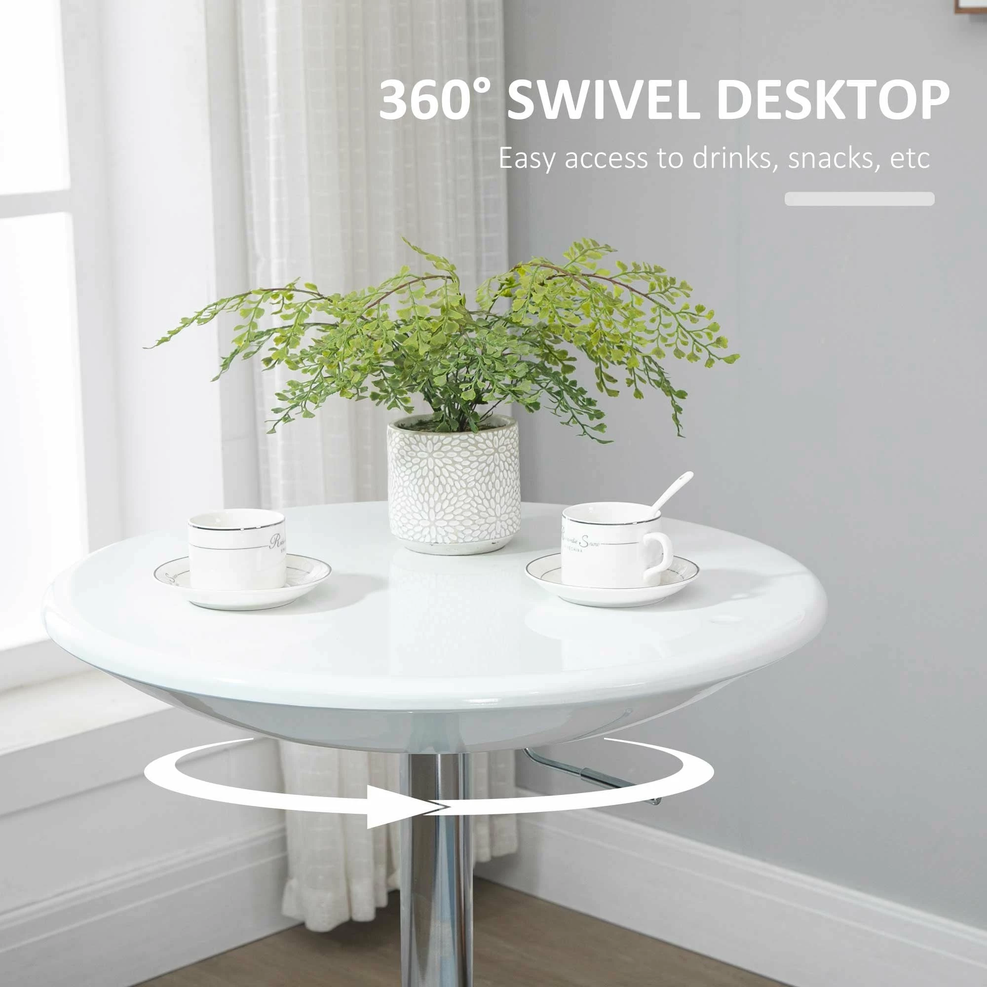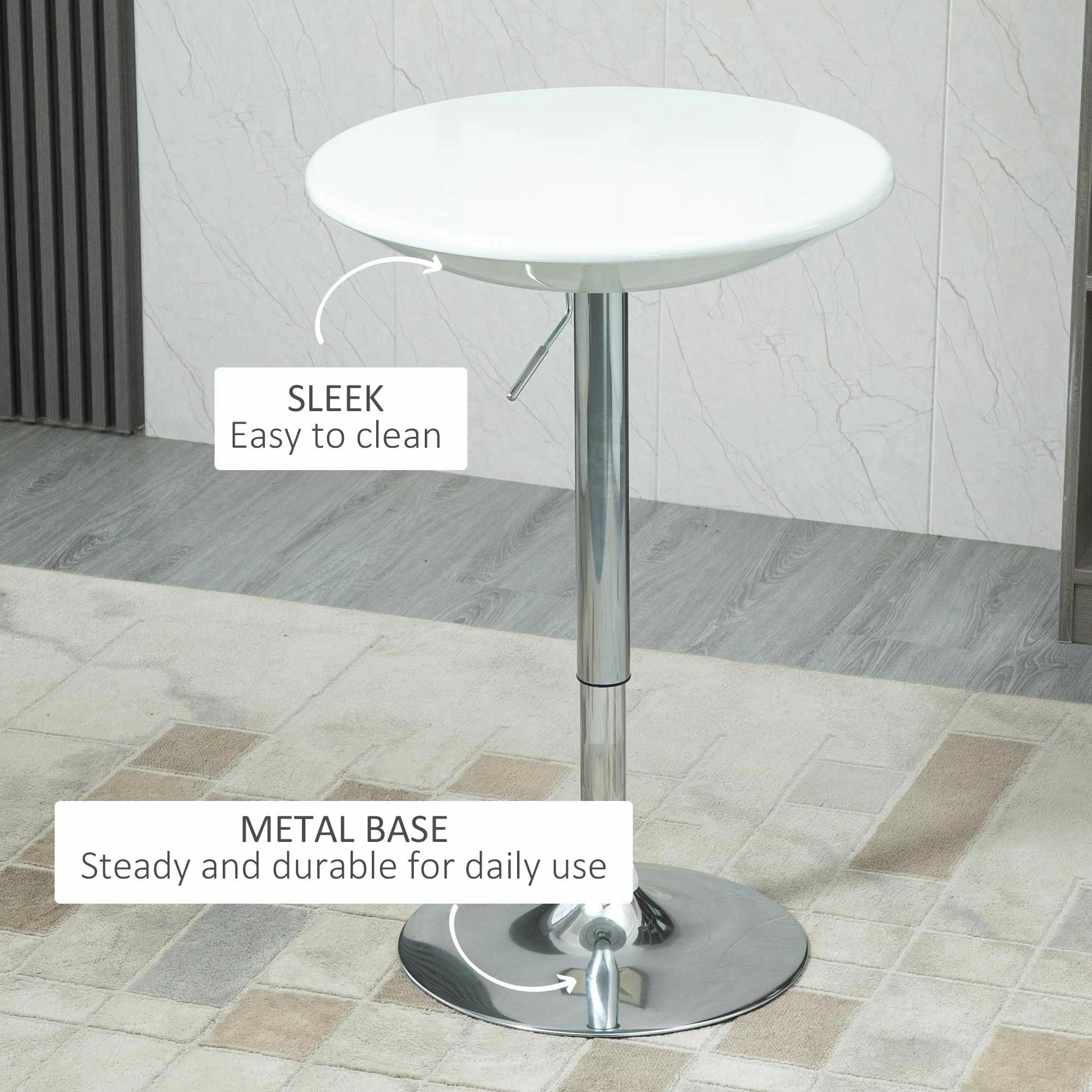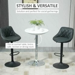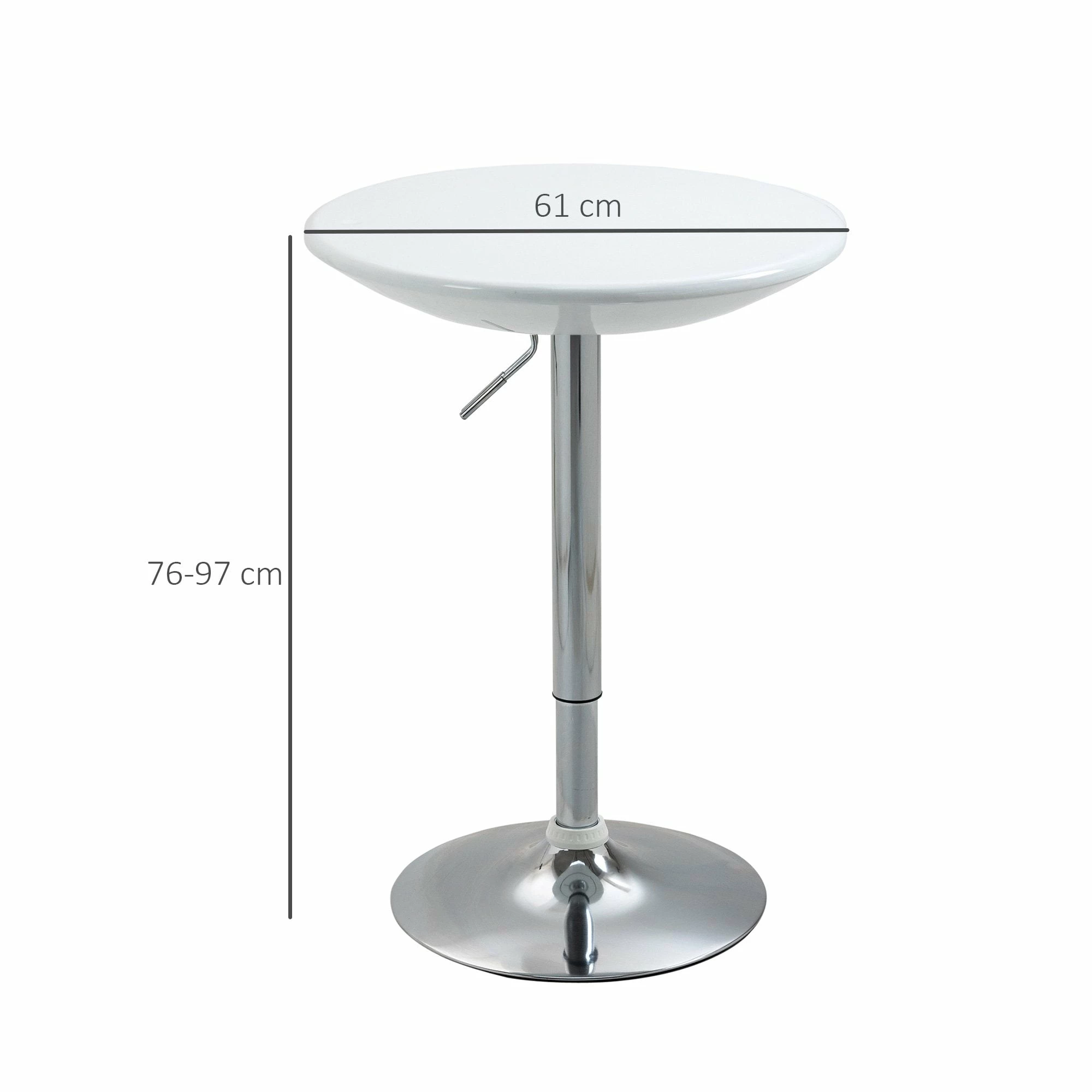 This bar table from HOMCOM is crafted exquisitely to match the elegance of your stylish dining room, kitchen, bar, or patio. The round ABS spray-painting table top is water resistant and easy to clean, consistently displaying a sense of modern style and class. With a simple pneumatic gas rod, this table can be adjusted to accommodate either seated or standing guests depending on the situation or setting, while the convenient 360 degree top swivels adds even more function to fashionable form.