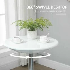 - 360-¼? SWIVEL TABLETOP: Swivel table top provides you with easy access to the foods, drinks, fruits, snack or coffee, making you enjoy the leisure time to your heart’s content. ABS painted waterproof desktop can be cleaned with a wet cloth and not be easily dirtied by water or oil stains.
