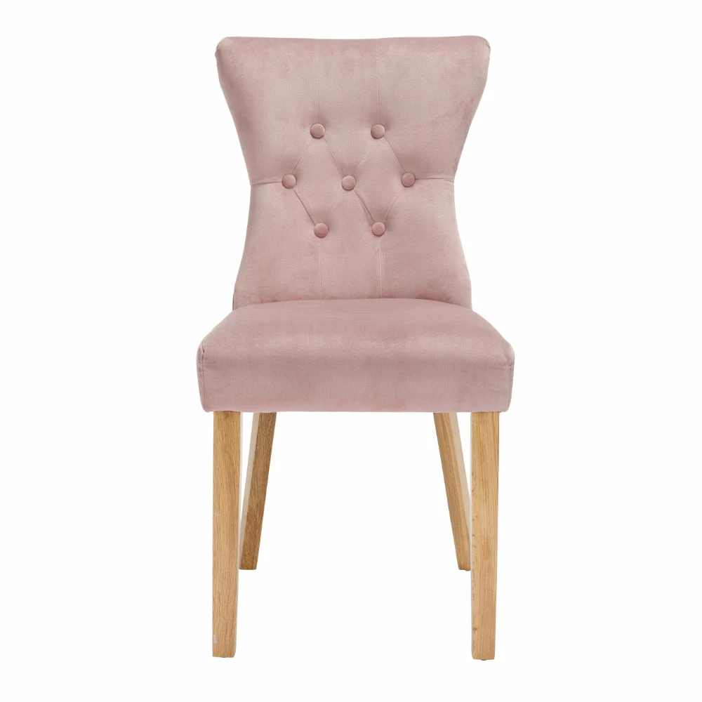 Velvet style fabric chair with solid ash legs. Available in six colours.